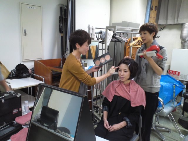 只今モデルさんにヘア、メイクをしてます!!