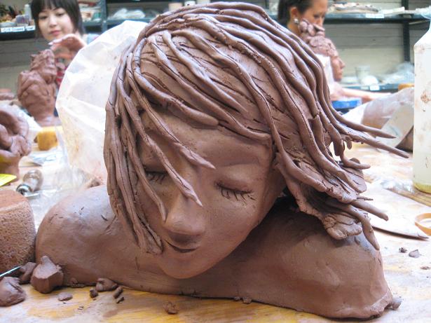 NYでは、クレイアートもしてきました!髪の毛だけではなく違う視点から、感性をみがくためです。陶芸などで使われるねんどを使って肩、首、頭、顔をよーく凹凸なども考えてつくりました。。。
