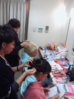 楽しい、メイク室の風景です
